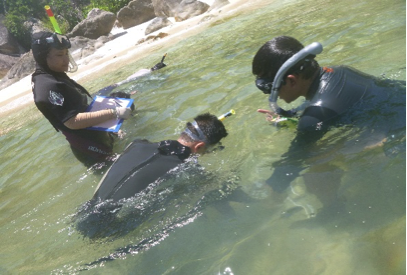 The shallow, sheltered waters of Cu Lao Cham provide relatively safe training grounds for new divers; except for when curious tourist boats come a little too close to diving operations or the Vietnamese military schedules artillery target practice! Despite these disruptions, the teams have been steadily improving their underwater communication, search and recording skills in areas of high underwater cultural heritage potential that were identified during the previous field season. This week, teams re-located and recorded a stone anchor, possibly of Arabic origin, and nearby ceramic scatter in shallow water.