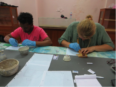 As mentioned above, we have found some ceramics on the beach and in shallow waters around Cu Lao Cham. Some of these ceramics have been tentatively dated to about 3000 BP! Ceramics are an indicator of the type and level of trade that has taken place in the region and so it is important for us to be able to identify and record them in as much detail as possible. The Hoi An Centre for Cultural Heritage Management and Preservation has a collection of shipwreck ceramics from archaeological and salvage operations in Vietnam and we were given access to them to study. This gave me flashbacks of first year archaeology where I was horrified to learn that LICKING the artefact is one way to ascertain what type of ceramic it is! Luckily, such drastic measures were not necessary in this instance and instead, we spent time honing our drawing skills, describing the artefacts in a database and practicing the 3D photogrammetry that Ian has been teaching us.